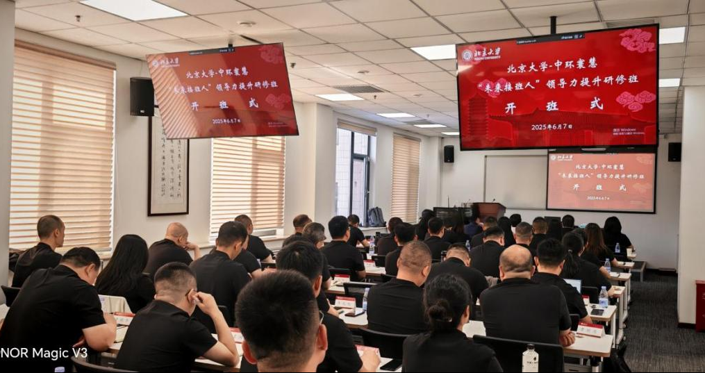 开班首日,北京大学继续教育学院副院长与中环寰慧集团董事长共同为私塾班揭牌,双方宣布将在能源战略、数字化转型等领域展开深度产学研合作。吴立群董事长在讲话中强调:青年人才是集团突破“双碳”新赛道的核心引擎,要将个人理想融入清洁供热温暖中国的企业使命,在国家能源转型浪潮中找准坐标。